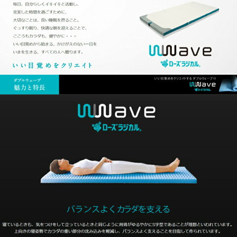 厚さ6cmタイプ WWaveの基本設計 バランスよくカラダを支える 寝ごこちが長続き 密着度を軽減する構造 シャワーなどで洗えます 日本製